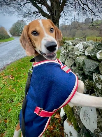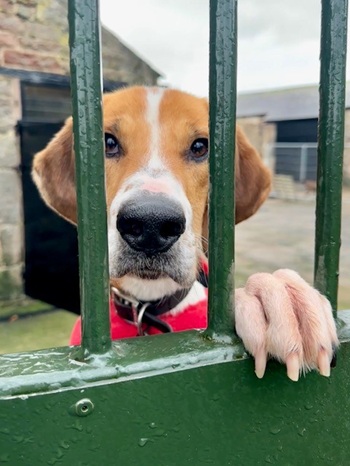 UPDATE 04/11/2025 Joey will very soon be coming to stay with us in a foster home so look out for new videos and updates Joey, (lemon and white), he is 5 years old. Joey is a big, happy hound who loves to play ball, he gets on great with other dogs.