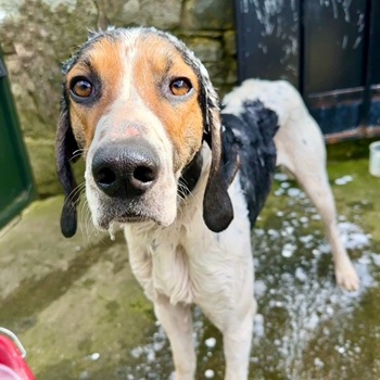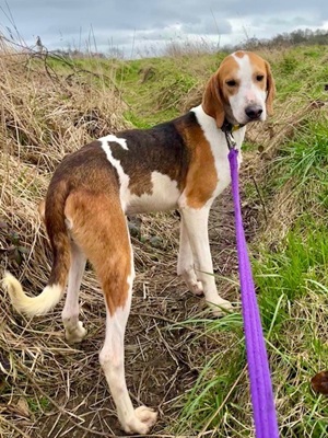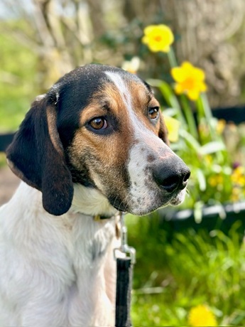 Murphy is a handsome 4-year-old Trailhound bursting with love and personality. He is incredibly affectionate and adores people, he has grown up around a young child. Murphy would suit being an only dog in a rural, active or sporting home with someone who is dog savvy or has rehomed a Trailhound before and can give him the attention and structure he thrives on. A secure garden would be needed. He is very confident around new people and loves to love. He can be very enthusiastic around people and he is very food orientated.