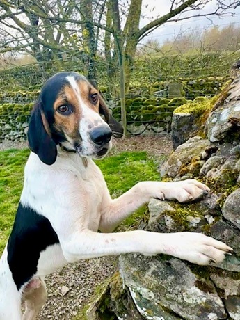 26/04/2026 MARTHA HAS INTEREST Lovely Martha, almost 7 years old, has come to stay with us in north Cumbria while we prepare her for adoption. Martha is a sweet girl. She gets on with the other dogs and hounds that she meets. She has lived on a farm with horses and farm animals. She travels well in the car and has immediately taken to living in the house. She has been clean inside since being with us. Martha has good recall once she has got used to her new person.